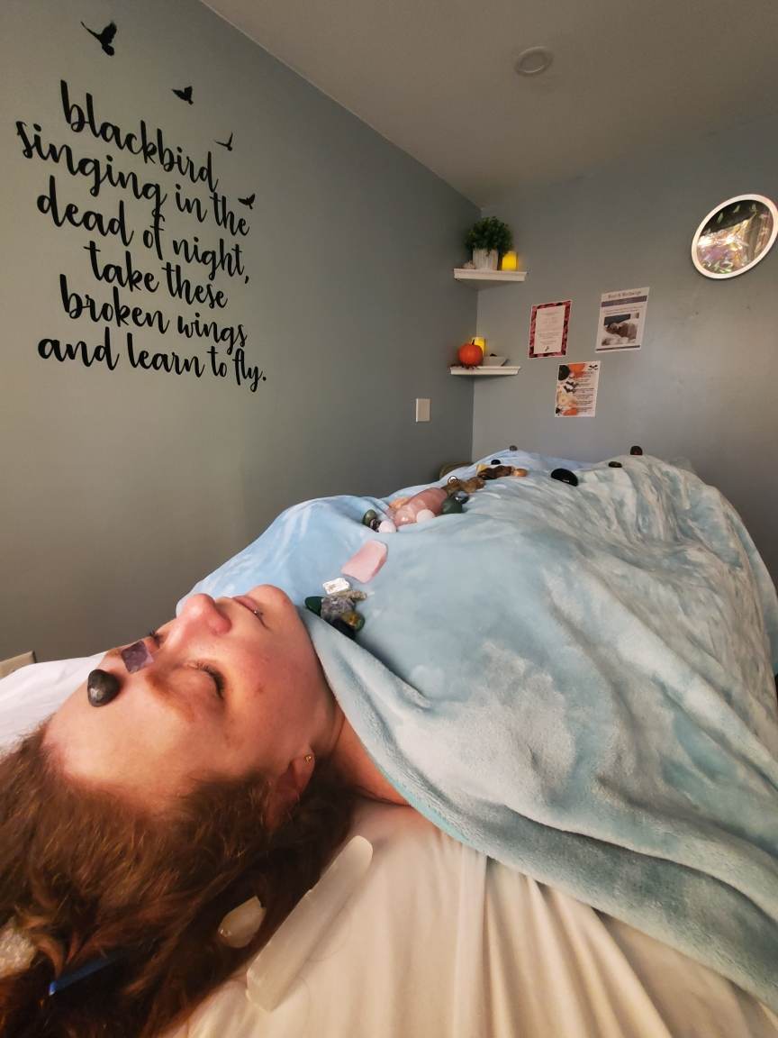 "I work in the medical field dealing with lots of heavy energies. I receive regular monthly treatments to help with clearing out and releasing these heavy energies and helping me get back into my own balance. The reiki is so peaceful and relaxing, and the crystals really assist with grounding my own personal energy. Sometimes I add a mini card reading for messages at the end for guidance on my journey. Rebecca is quite experienced in the energy work and I trust and love working with her. These sessions help me emotionally, spiritually, and energetically."