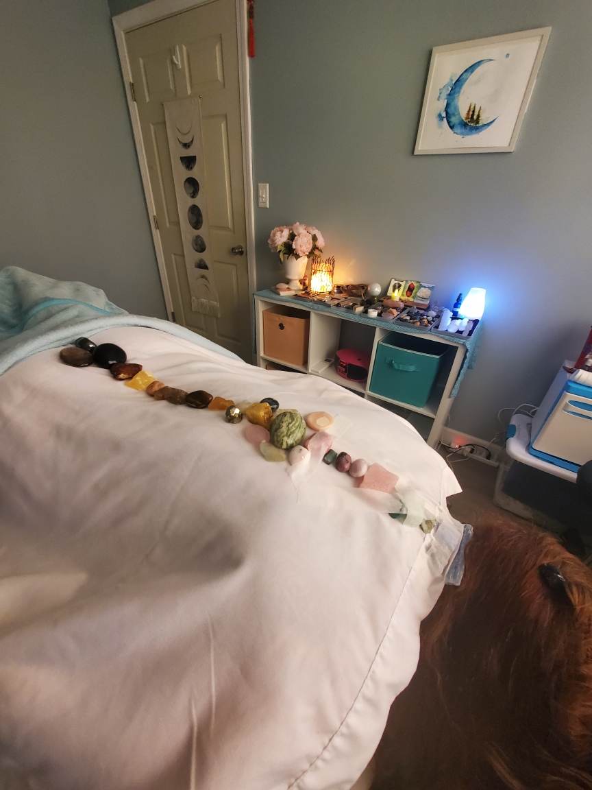 "I was in need of some deep energy work from dealing with a lot of negativity around me lately. I've been so stressed, overwhelmed, and angry. The crystal reiki Rebecca performed on me helped me release heaviness and provide comforting healing energy. I saw lots of colors and felt the energy move, especially in my throat. Her hands get so warm with the reiki energy! She also gave me some really helpful insights of things to address and recommendations for home care. I will be back!"