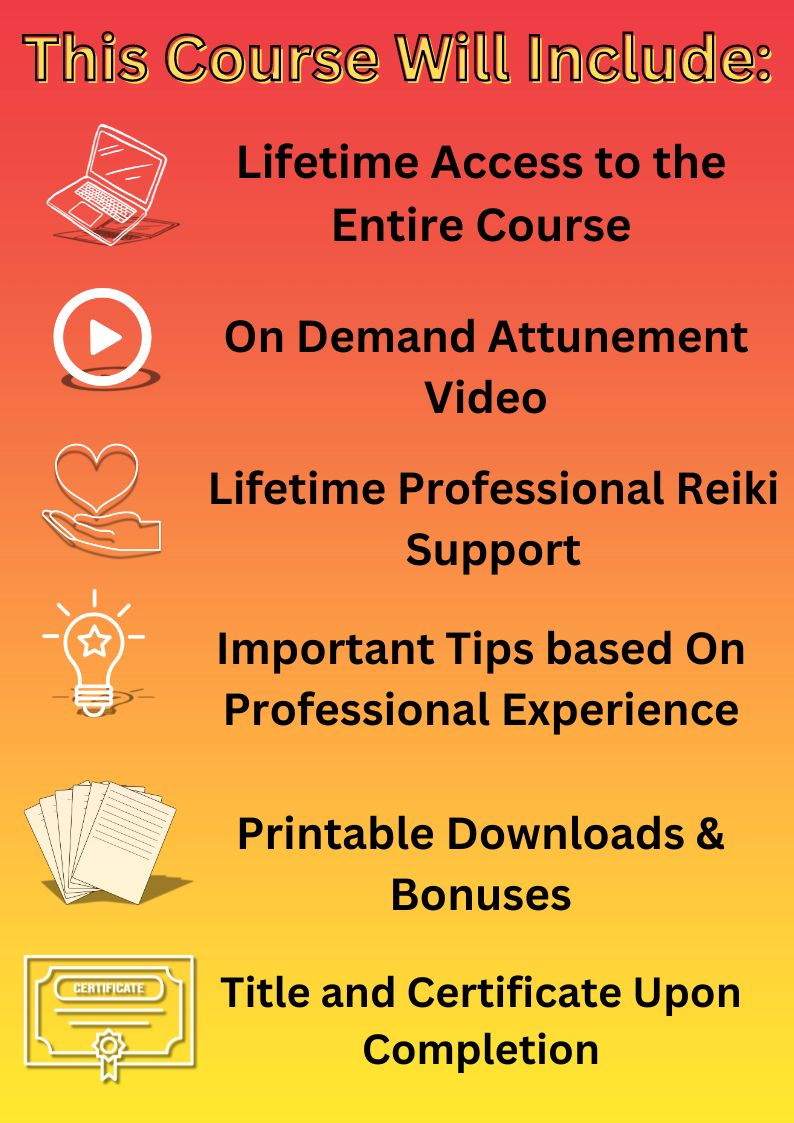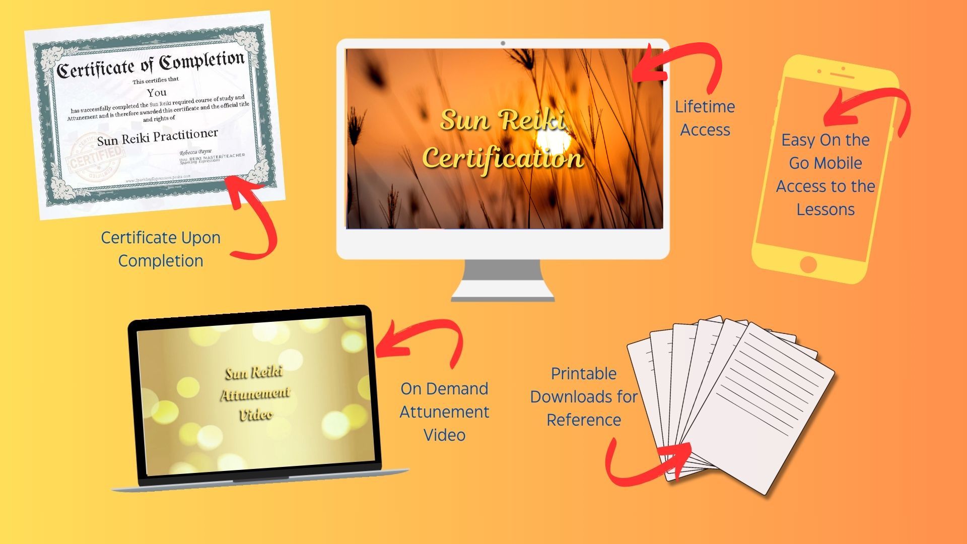 Because this course includes a 1 Single Level Master Attunement, with no other levels, you gain everything you need to work on yourself and teach and attune others to Sun Reiki if you wish to do so. This Course is beginner friendly, and all tools, information, and materials are provided for someone who has zero experience with energy work.